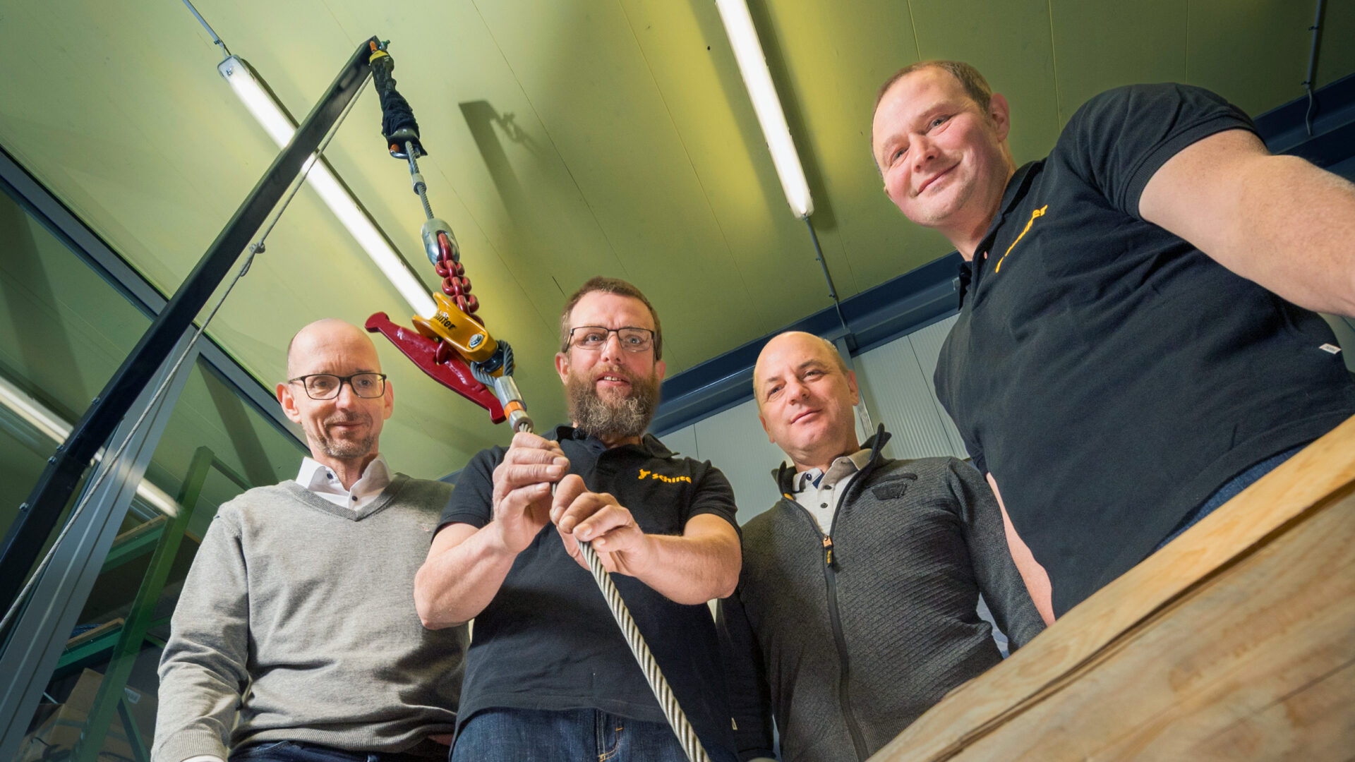 Die technische Entwicklung sowie die Produktion für Seilbahnen und das Forstwesen zeichnet die Erzeugnisse der Schilter Seilbahn- und Metallbau GmbH aus Erstfeld aus. Das spezielle Flair für die luftigen Transportmittel wurde ihnen in die Wiege gelegt. Die Brüder Isidor (rechts auf dem Bild oben) und Lorenz (2. v. l.) Schilter begleiteten in Kinderjahren ihren Vater oft und gerne zum Holzen. Um einerseits die schwer erreichbaren Gebiete besser zu erschliessen und andererseits die geschlagenen Bäume einfacher abzutransportieren, baute dieser selbstständig Materialseilbahnen und gab seinen grossen Erfahrungsschatz den Söhnen weiter. 2004 gründeten Lorenz und Isidor Schilter ihr eigenes Unternehmen. Vor der eigentlichen Aufnahme ihrer Geschäftstätigkeit bauten die zwei gelernten Metallbauschlosser eigenhändig eine Werkhalle an der Reussstrasse. Seither realisieren sie Kundenprojekte für den Bau von Transportseilbahnen, führen Revisions- und Unterhaltsarbeiten durch oder stellen in der mechanischen Fertigung individuelle Kleinteile her. 2007 haben die Brüder zudem die Ürner Seilbüdä von Martin Indergand übernommen.